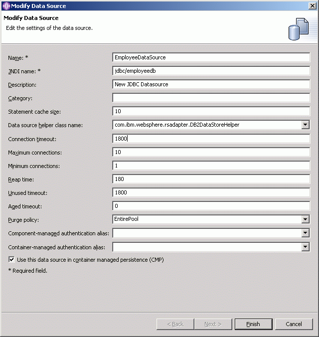 At deployment time, each component must define in its deployment descriptor all the resource names it expects to find in the local JNDI namespace: EJB homes, data sources, mail providers, Java Messaging Service queues and more. Data sources and other J2EE resources need to be defined by what are called resource references.