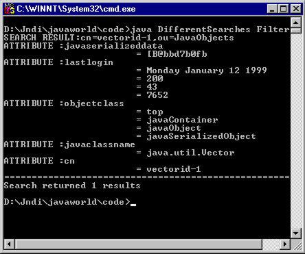 = ctx.search("cn=vectorid-1,ou=JavaObjects,o=myserver.com", filter,